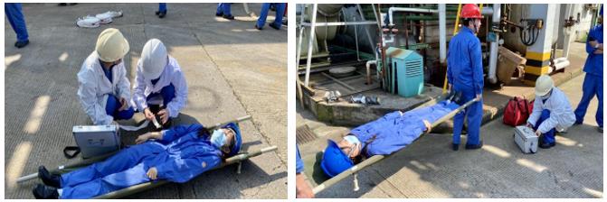 整个活动共分为现场模拟火灾疏散、伤员急救、初起火灾灭火器实射演练与室外消火栓操作演练四个过程,共历时1.5小时,参加人员30余人。通过此次应急演练,不仅增强了员工的应急消防意识,同时还掌握了干粉灭火器、泡沫灭火器、二氧化碳灭火器以及消防水带的操作使用步骤及方法,进一步提高员工应对突发事件的能力。