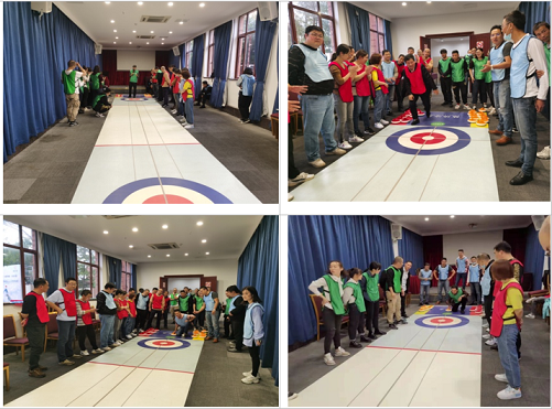 “旱地冰壶”项目,又名地壶球,是一个以团队为单位在平滑地面上进行的投掷性运动项目。这个项目更考验的是团队成员之间的沟通协调能力,通过让本方冰壶球停在预先设定好的位置,或将对方的冰壶球击出,达到制胜的目的。