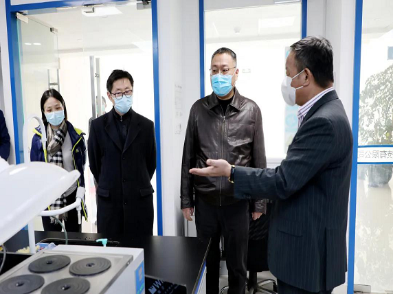 随后,在董事长杨建华的陪同下,曹书记一行来到研发楼,查看现场环境和防疫消毒情况,并详细询问了企业现阶段复工复产的相关工作、生产进度及当前需协调解决的问题。