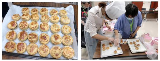大家看着自己的劳动成果由面粉到做成月饼,再到烘烤出炉,心里充满着喜悦与成就感。看着亲手做出来的月饼,都激动地拍照分享,想好好珍藏这一份美好的回忆