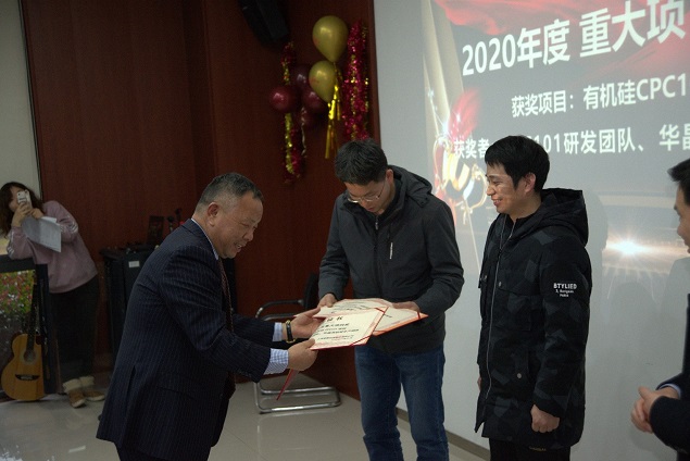表彰会上,创始人、董事长杨建华博士对重大项目奖取得的成绩予以肯定,并赋予厚望。杨博士表示,康鹏在2021年起的以后几年里,将继续以高端化学品中的材料化学品和含氟化学品为发展方向,我们长期发展的液晶材料和近几年新发展的OLED材料,锂电池材料和有机硅材料目前在各自的细分领域里都占有重要的地位!杨博士鼓励大家充分发挥自主性、不断挖掘潜力,期待有更多像有机硅CPC101一样的项目脱颖而出!